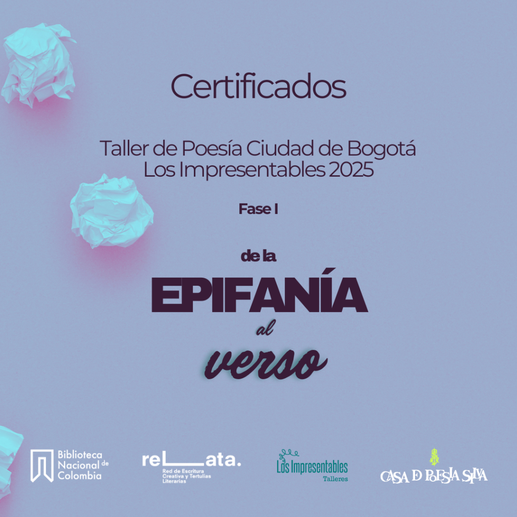 Si fuiste parte de nuestro Taller de Poesía Ciudad de Bogotá Los Impresentables 2025 «De la epifanía al verso», ¡tenemos una excelente noticia! Tu certificado de participación ya está disponible para descargar directamente aquí en esta misma página.