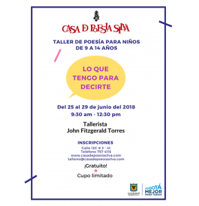 El propósito de este taller es estimular y fortalecer en los niños el gusto por la poesía desde el disfrute, la compresión, el conocimiento, la lectura y la escritura.
